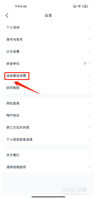 3、进入设置,点击【消息推送设置】。