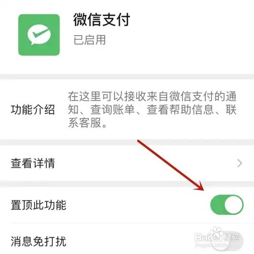 3、打开按钮将“置顶此功能”后的按钮打开即可。